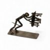 Cette sculpture en métal, entièrement façonnée à la main dans nos propres ateliers, exprime à la fois la force du matériau brut et la finesse du geste artisanal. Chaque personnage, soudé et modelé avec minutie, raconte une histoire : l’effort, la concentration, ou le mouvement, capturés dans une posture pleine de caractère.