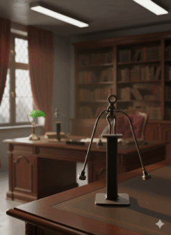 Montée sur une base métallique stable, elle apporte une touche industrielle et contemporaine à un bureau, une étagère ou un espace professionnel.