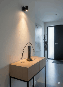Montée sur une base métallique stable, elle apporte une touche industrielle et contemporaine à un bureau, une étagère ou un espace professionnel.